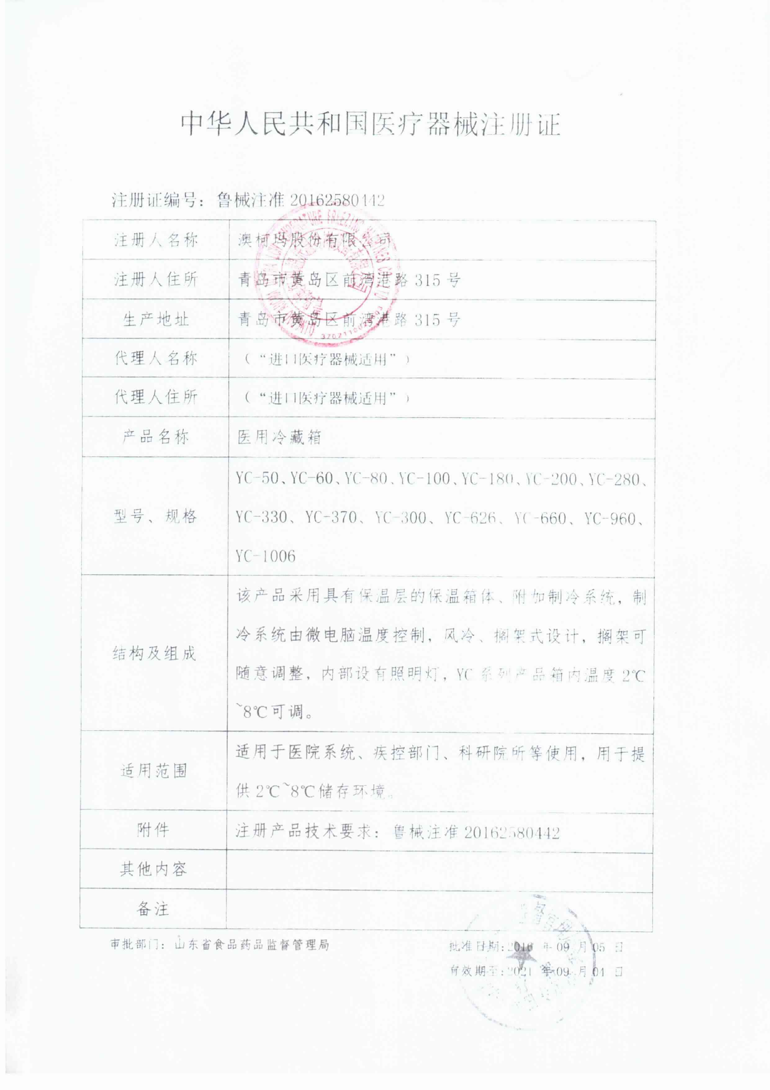 澳柯瑪AUCMA藥品冷藏箱 YC-330